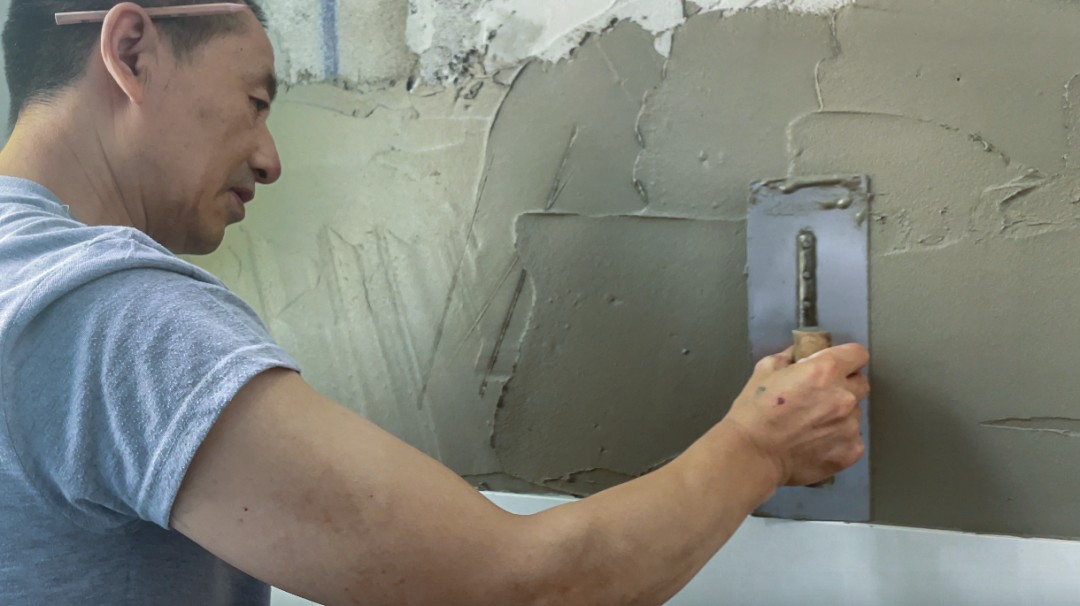 不僅公司對于工地有要求,趙師傅自己也對工藝上有著嚴格的標準,每一面墻都會主動進行檢查,看是否有空鼓情況?!皼]有規(guī)矩不成方圓?!鄙┳釉谝慌哉f道。