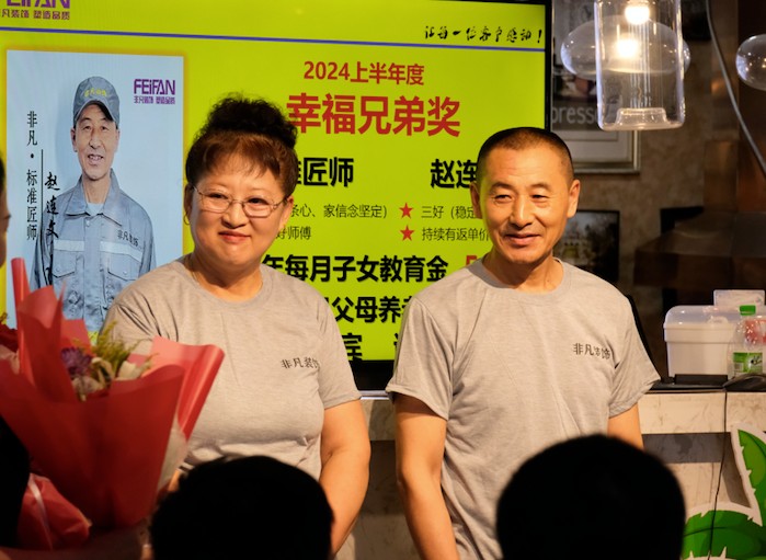 談起榮升為幸福兄弟,嫂子在一旁笑盈盈的說:“只要是進咱非凡的師傅都是好樣的!”